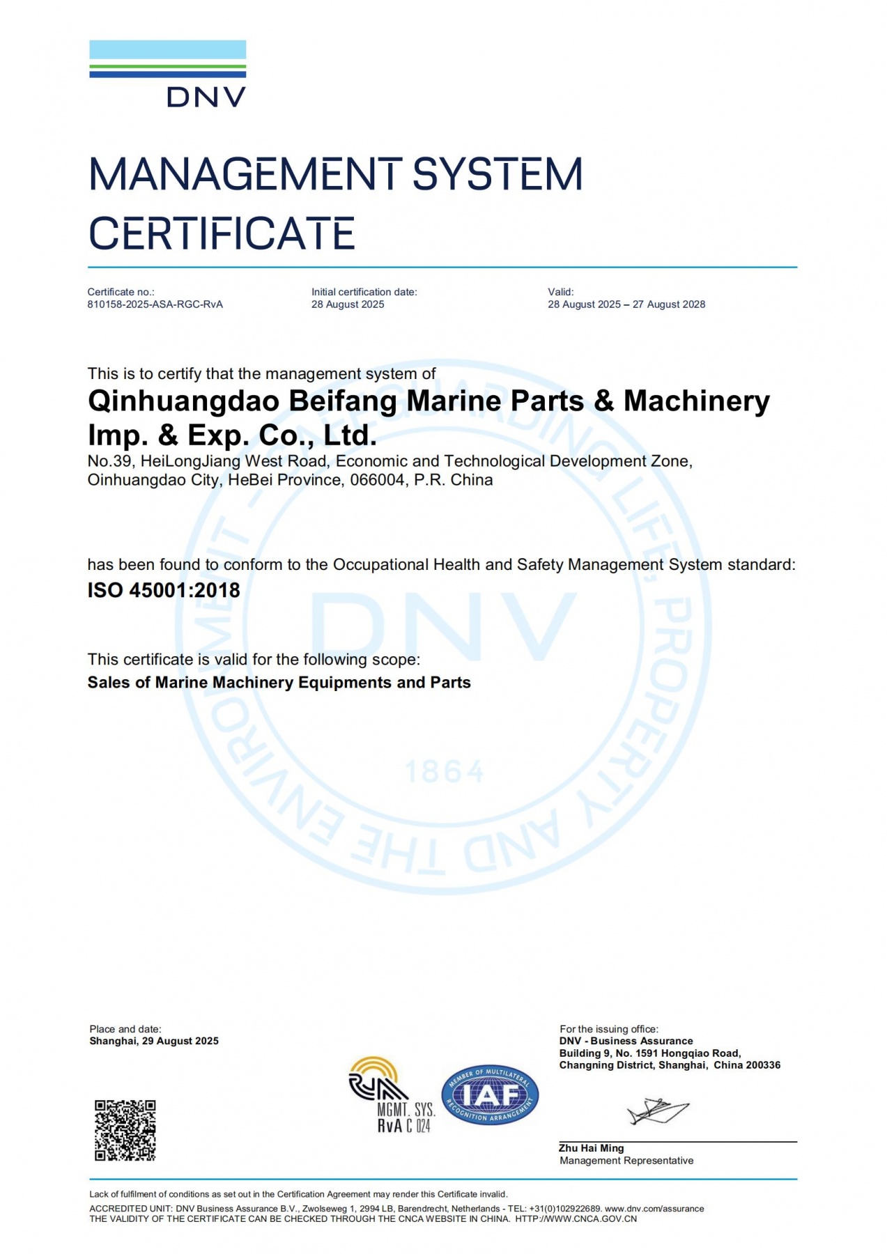 DNV Management System Certification Certificate